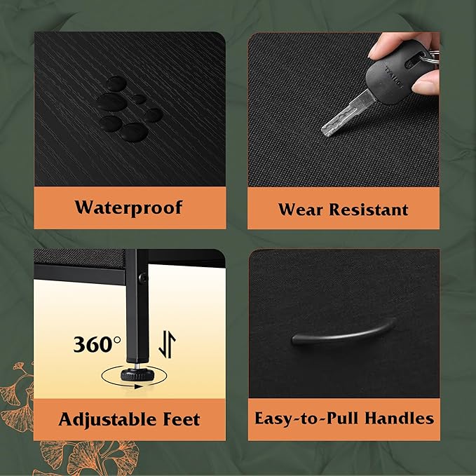 - š¦š§šØš„šš¬ š¦š§š„šØšš§šØš„š:Strong steel frame and water-resistant wood top offer stable support and ensure years of use; High-quality non-woven fabric drawers is easy to clean.