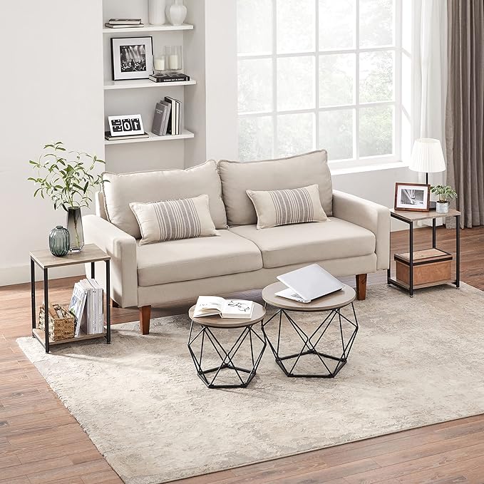 - [Streamlined yet Stunning] Giving an industrial look to any space, from the living room to bedroom, this set of 2 side tables has a clean, understated design while making an impressive statement with its greige tone and matte black steel accent