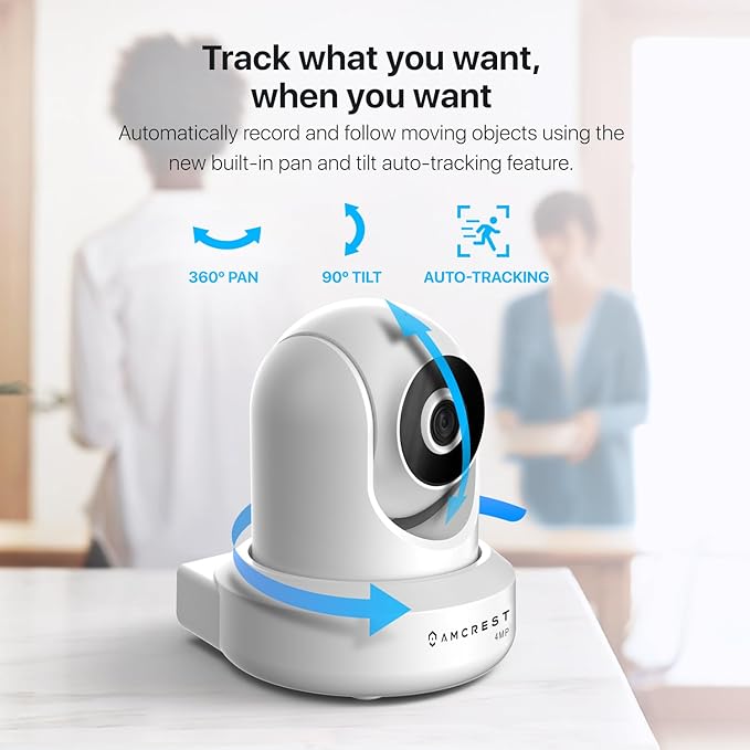 Amcrest 4MP ProHD Indoor WiFi, Security IP Camera with Pan/Tilt, Two-Way Audio, Night Vision, Remote Viewing, 4-Megapixel @30FPS, Wide 90° FOV, IP4M-1041W (White)