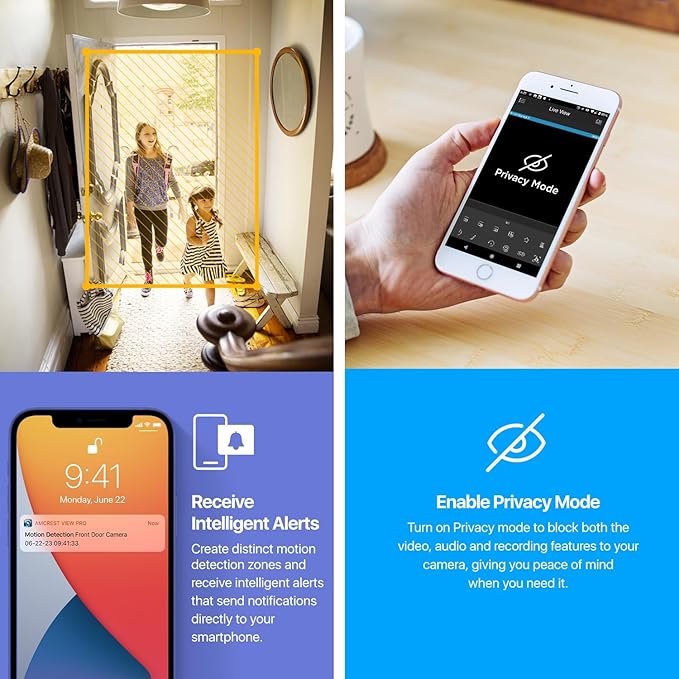 - SMARTER SECURITY – Receive motion alert notifications, review footage and engage in two-way communication via your smartphone using the Amcrest View app. Playback and record professionally on a PC using Amcrest Surveillance Pro for Windows and MAC or Blue Iris Professional. Works with Amcrest Cloud remote video storage, MicroSD, Amcrest NVRs, Synology and QNAP NAS, FTP, Chrome, Firefox, Edge, Safari, etc using Amcrest Web View Extension.