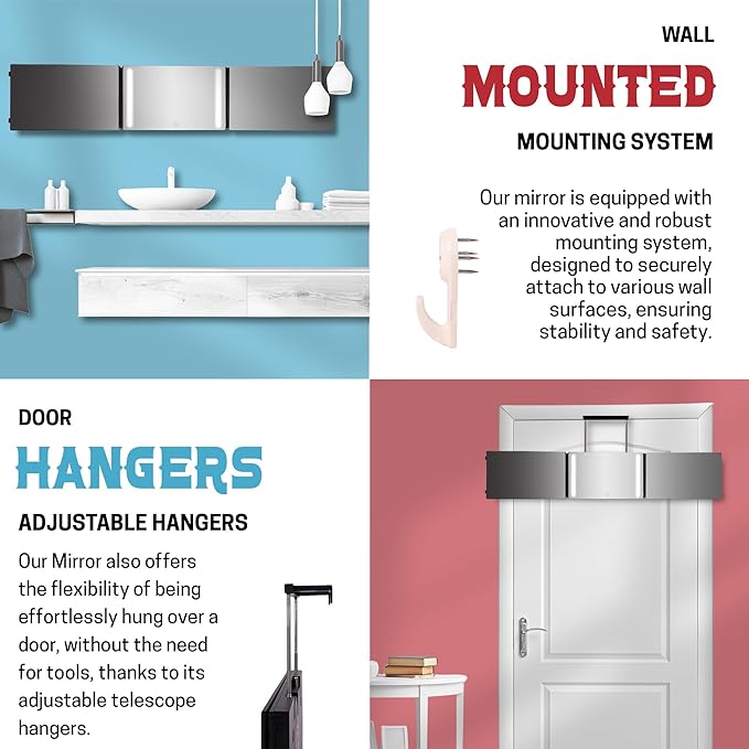 - 【Crystal Clear Glass Quality】 Our 3way mirror boasts distortion-free glass for superior clarity, leaving plastic competitors in the dust. See the back of your head in true detail.