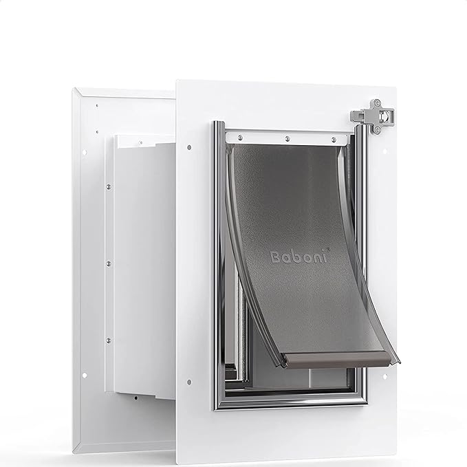 Baboni Pet Door for Wall, Steel Frame and Telescoping Tunnel, Aluminum Lock, Double Flap Dog Door and Cat Door, Strong and Durable (Pets Up to 12 Lb) -Small