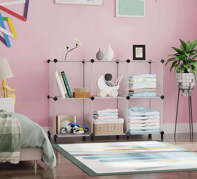 - Large Storage System: Each cube size is 11.8"x11.8"x11.8", 6 cube shelves units provide enough space to store books, clothes, toys, shoes, bags, purse, potted plants, files, yarn, artworks, etc. It is a multi-purpose room storage organization to store your daily items