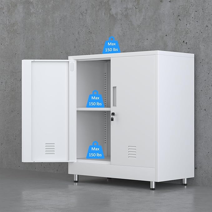 - STURDY AND DURABLE - Built with powder coated metal and reinforced construction, this lockable cabinets are designed to be hard-wearing and scratch-resistant