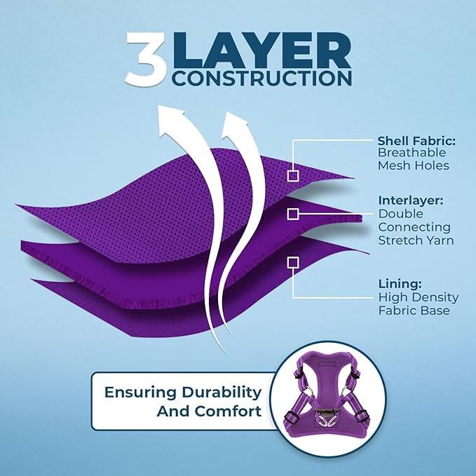- REFLECTIVE WEBBING: 3M Scotchlite reflective material on the straps of this dog harness enhance your dog’s visibility during those early morning and late evening strolls.