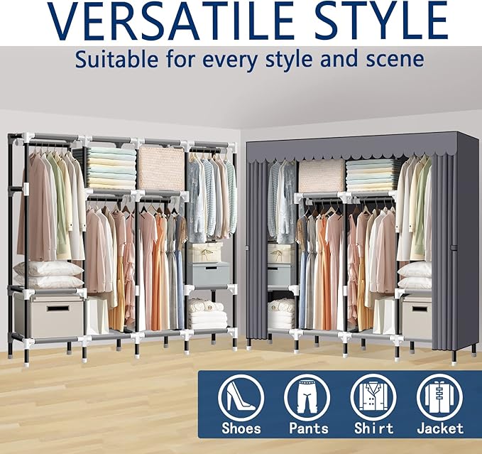 - EASY TO ASSEMBLE: Don't worry. The portable wardrobe comes with a detailed manual, require no extra tools, which can help you easily assemble it. Donβt worry about missing parts, we will equip additional components. You'll get a new closet in amazing time, and ready to display your beautiful clothes before you know it.