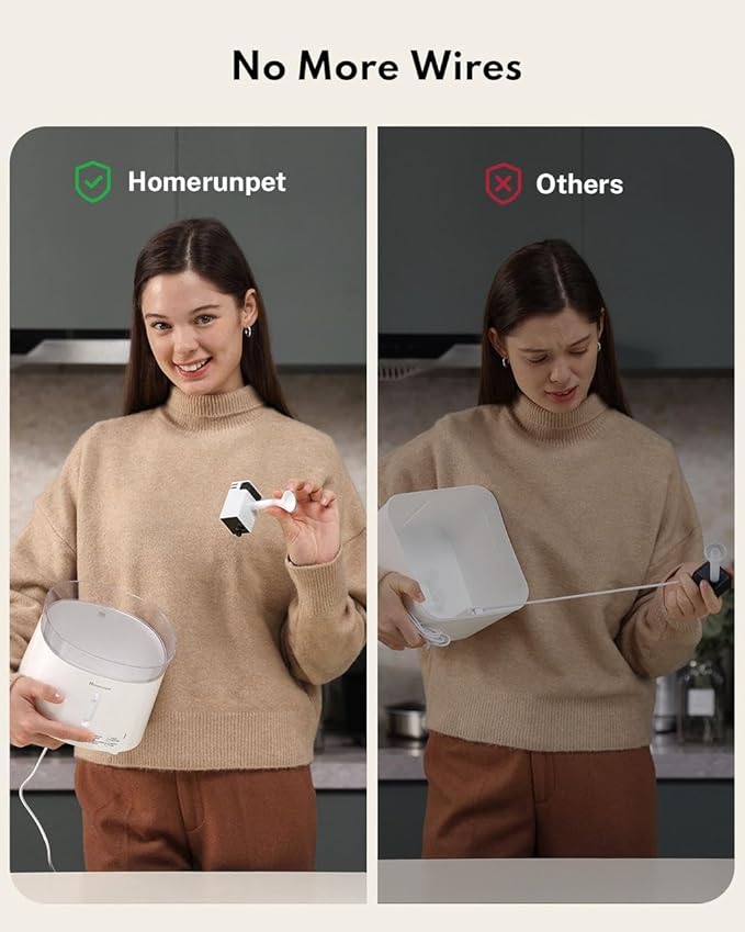 - 【Ultra-Quiet Cat Water Fountain】Operating at an ultra quiet 20db, our cat water fountain is virtually silent. Low decibel technology creates a calming environment for your pet. Our wireless construction ensures pet safety and a small footprint in your home.