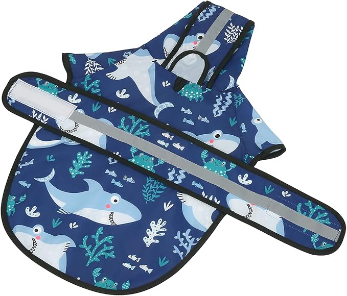HDE Dog Raincoat Jacket Reflective Adjustable Hooded Pet Poncho Rain Coat with Leash Hole for Small to X-Large Dogs Sharks - XL