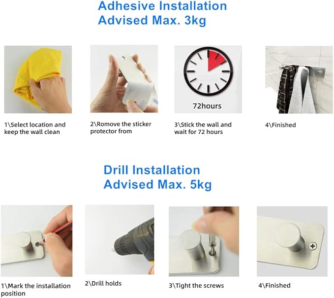 - Note: This coat rack can be attached very firmly to all smooth surfaces, but it is not suitable for painting walls, wallpaper or other uneven surfaces. You need to stick the coat hooks for 48 hours before hanging.