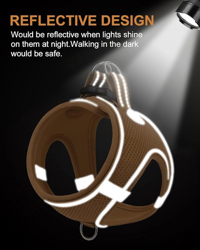 Joytale Small Dog Harness, Breathable Mesh Step-in Vest, Reflective Soft Padded Harnesses for Cats and Puppies Dogs, Brown, XXXS