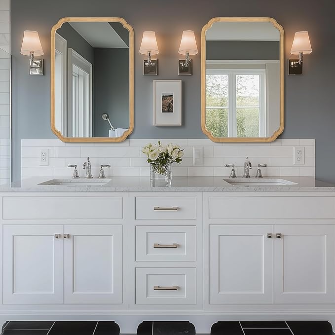 - Decorative Mirror: Modern minimalist style and consistent gorgeous aesthetic design are suitable to decorate any space, Fit farmhouse, bathroom, bedroom, living room, entryway, etc. Visually expand the space, increase the light, enhance the beauty of any room in the home.