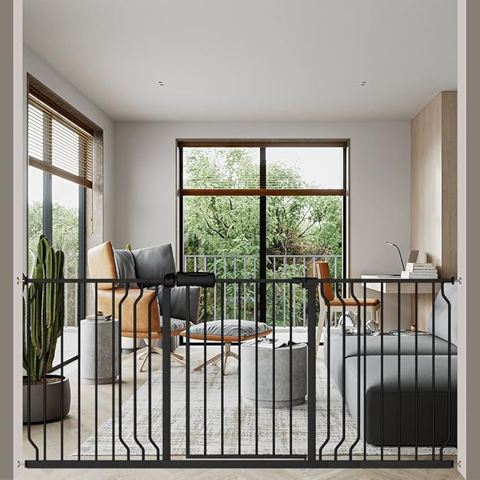 - 【Safe for Baby】Your curious crawlers will be "blocked" by the safety extra wide baby gate because we design the double-lock safety release which makes it difficult for toddlers to open the gate ,but adults can operate with one hand and pass quickly.