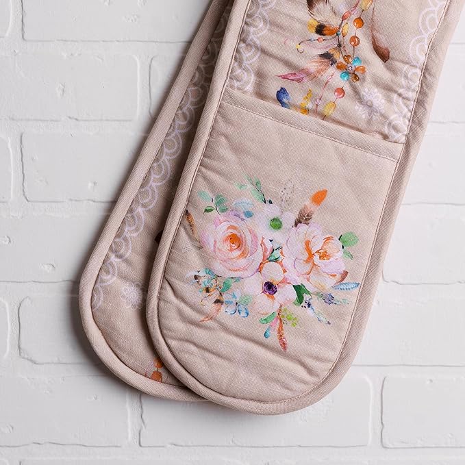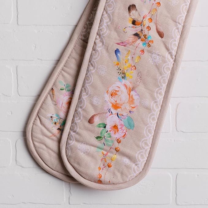 - Package includes: Includes 1 double oven mitt sized 7"x35". Perfect for handling hot cookware safely while adding a touch of European elegance to your kitchen. Designed in Europe and made in India with care