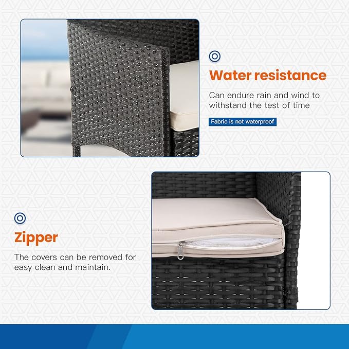- COMFORTABLE & STYLISH DESIGN: This patio set has thick, high-density rebound sponge cushions for cozy seating. Its simple, stylish look suits patios, balconies, poolside, or gardens.