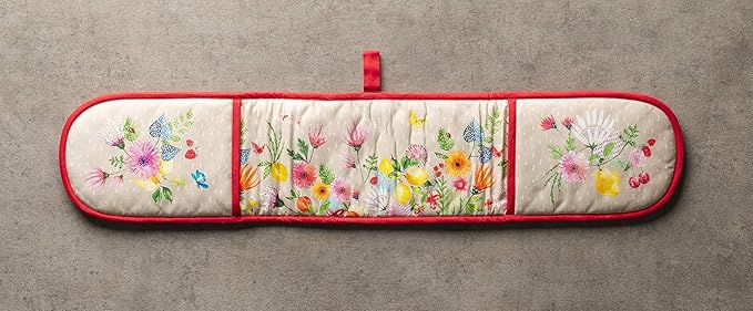 - Package includes: Includes 1 double oven mitt sized 7"x35". Perfect for handling hot cookware safely while adding a touch of European elegance to your kitchen. Designed in Europe and made in India with care