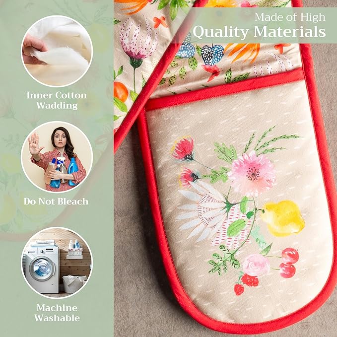- 100% Quilted cotton: Crafted from premium quilted cotton for superior heat resistance and durability. This double oven mitt offers a soft, flexible grip and protects your hands during baking, roasting, or grilling