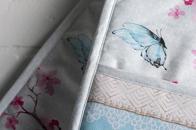 Maison d' Hermine Double Oven Mitts 100% Cotton 7"x35" Double Oven Mitt Heat Resistant BBQ Cooking Gloves with Loop, Baking, Grilling, Kitchen, Handling Hot Pans Spring Summer (Blossoms in Spring)