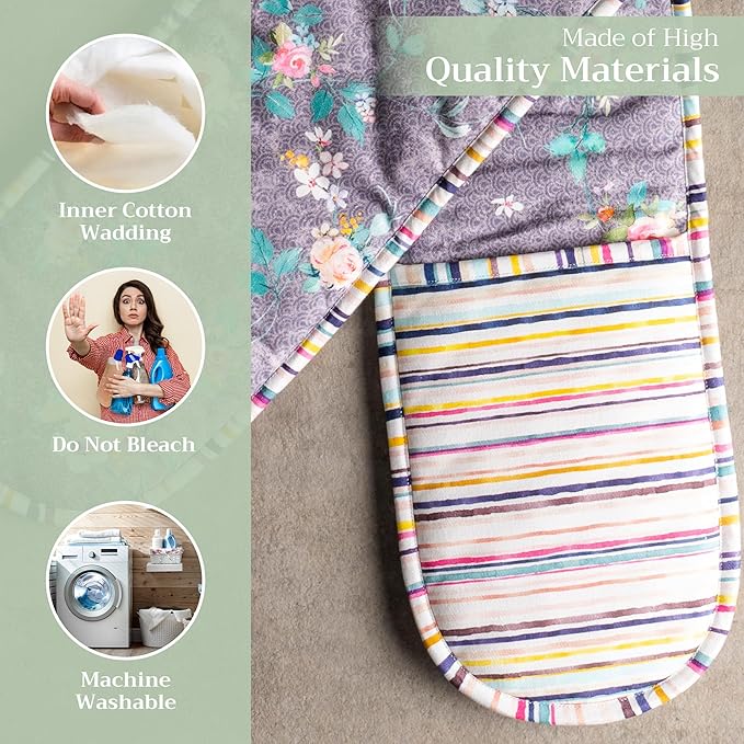 - 100% Quilted cotton: Crafted from premium quilted cotton for superior heat resistance and durability. This double oven mitt offers a soft, flexible grip and protects your hands during baking, roasting, or grilling