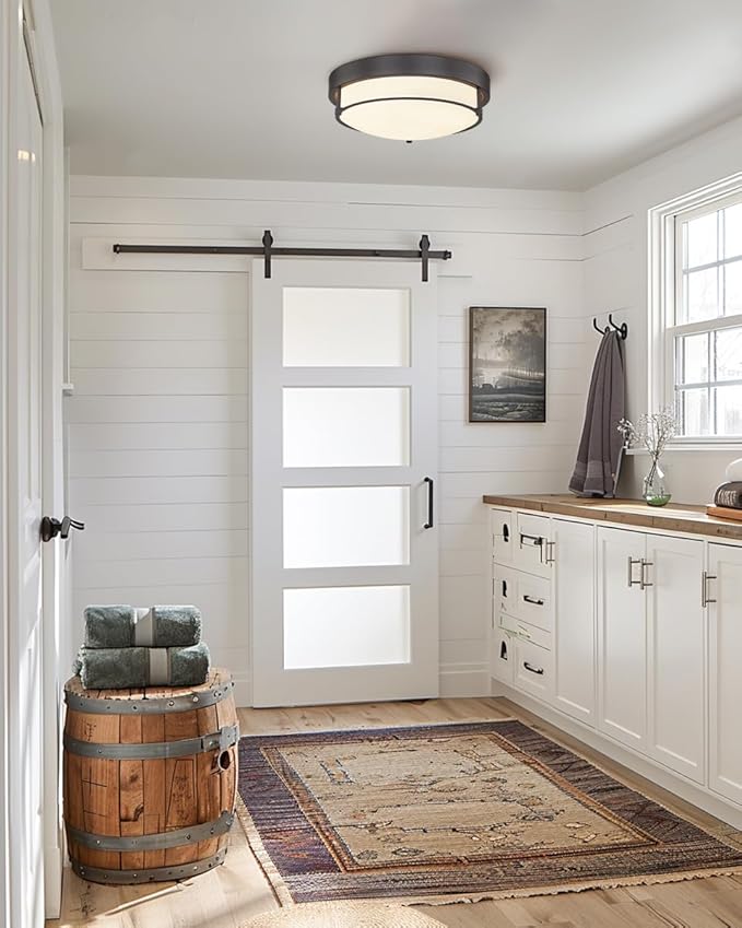 - MODERN DESIGN: This light fixtures ceiling mount is made of high-quality metal frame and frosted glass, which is durable and non-glare. Simple shape and oil rubbed bronze finish design, can perfectly match any decoration. The semi flush mount ceiling light not only provides you with lighting, but also enhances your sense of life atmosphere.