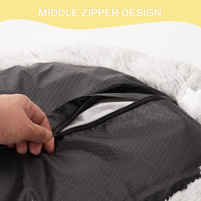 - [Easy Care] This plush dog bed is equiped with a middle zipper on the bottom. The cover is machine washable for your convenience. Tumble dry at low temperature. Do not bleach. Please shake and pat the fuzzy dog bed to make completely fluffy before use.
