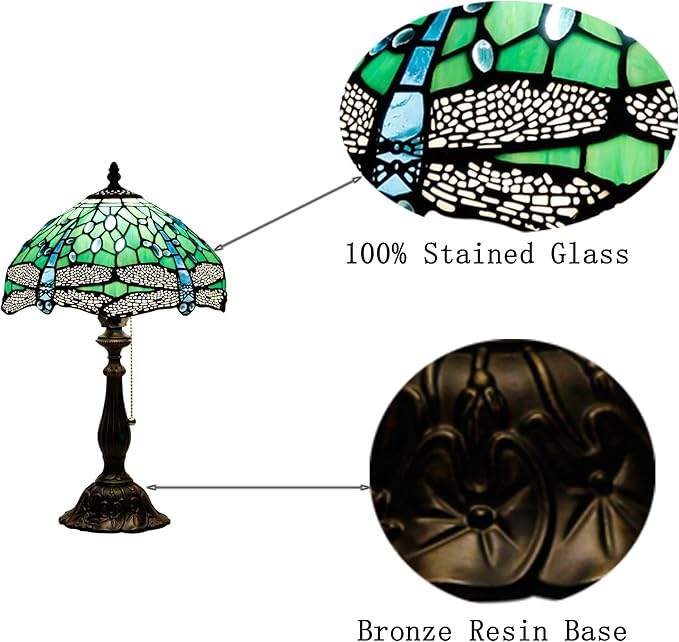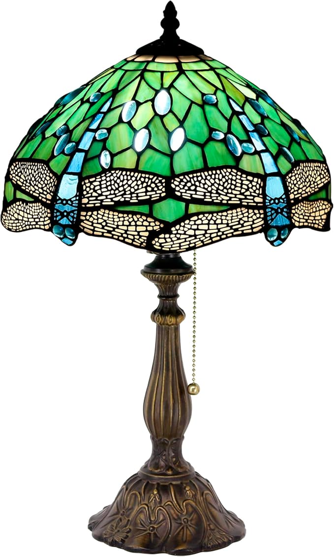 Tiffany Table Lamp Stained Glass Lamp 12X12X19 Inch Antique Reading Light (Green Dragonfly)