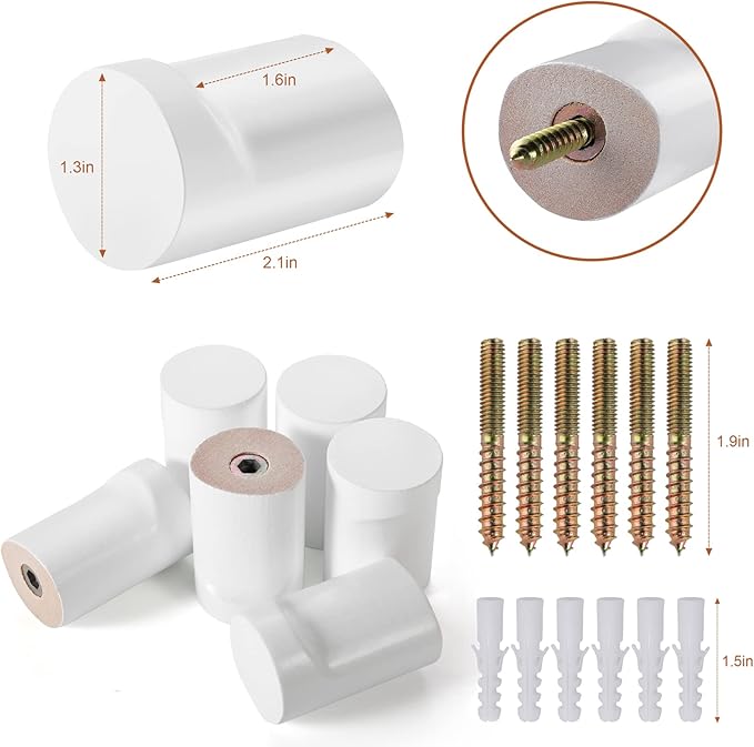 Wood Wall Hooks 6 Pack, Modern Decorative Coat Hooks Wall Mounted, Handmade White Hat Hooks Heavy Duty Entryway Wall Hangers for Hanging Towels Robes Purses (White)