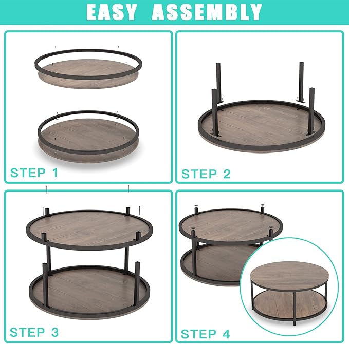 - [2-Tier Coffee Table] Spacious and Neat Living Room Storage: Our 36-inch round coffee table features a 2-tier design, providing ample space for all your Living Room essentials. Keep your daily supplies within reach and maintain a tidy and organized space.