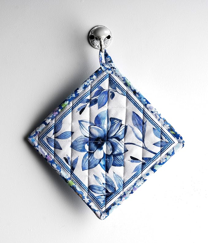 Maison d' Hermine Pot Holders 100% Cotton Heat Resistant Potholders 8" x 8" Hot Pads with Loop BBQ, Cooking, Baking, Grilling, Kitchen, Handling Hot Pans Spring/Summer (Pack of 1, Summer Blues)
