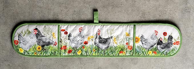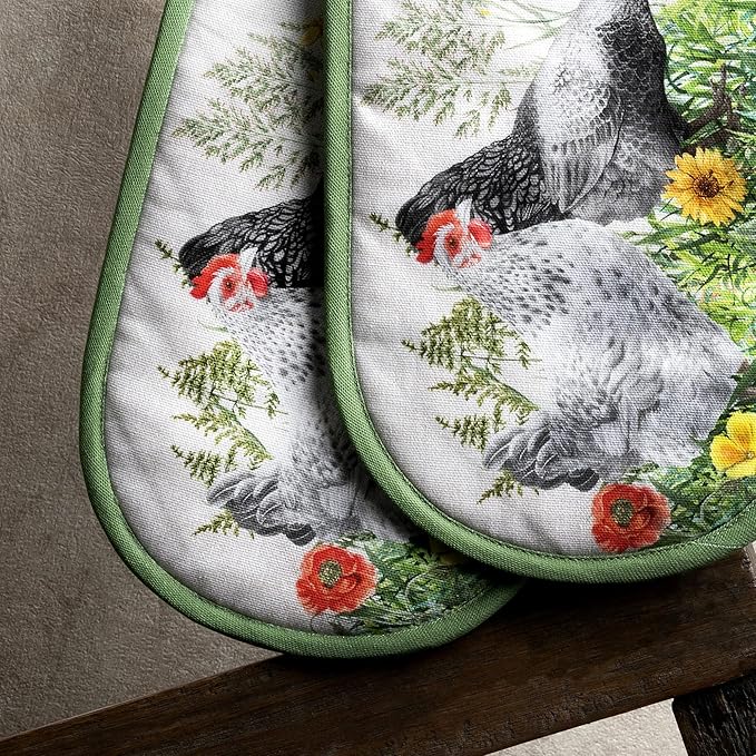 Maison d' Hermine Double Oven Mitts 100% Cotton 7"x35" Double Oven Mitt Heat Resistant BBQ Cooking Gloves with Loop, Baking, Grilling, Home, Kitchen, Handling Hot Pans Spring Summer (Basse Cour)