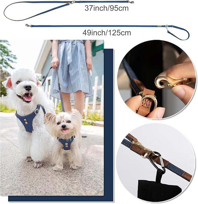 No Pull Dog Harness with Multifunction Dog Leash,Soft Adjustable No Choke Escape Proof Pet Harness Vest for Medium Dogs or Large Dogs,Denim Blue,M