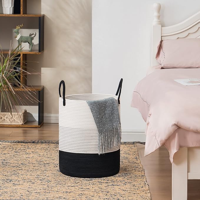 - 【Eco-friendly Tall Hamper】 15D x 20H inches tall round laundry hamper is 100% natural hand woven cotton thread rope has no plastics, harsh chemicals, toxins, or harmful additives. Perfect for clothes, blanket, throws and stuffed animals