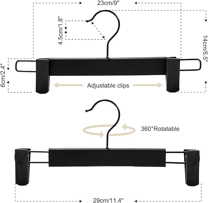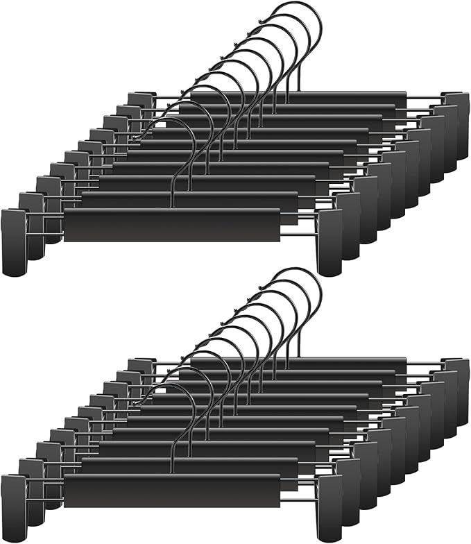Clothes Pants Hangers, Space-Saving Skirt Holders with 360 ° Swivel Hooks, Adjustable Clips, Trouser Hangers, Clothes Coat Garment Jeans Hangers (20 Pack, Black)