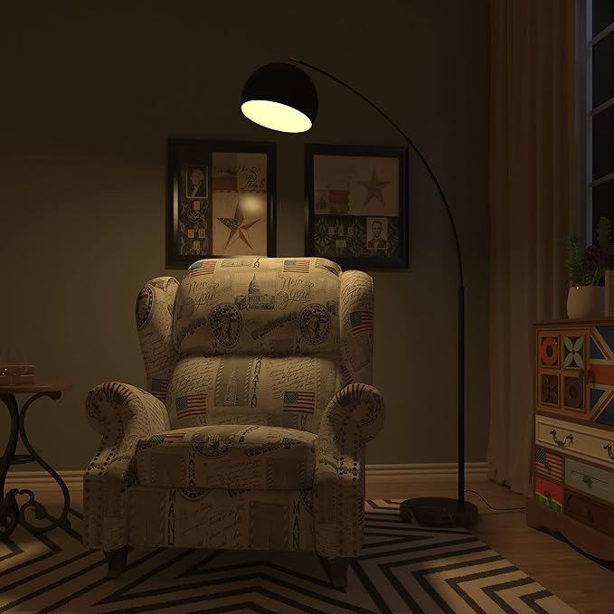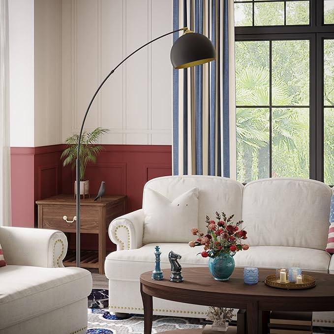 - Mid-Century modern style. This timeless arched floor lamp's curved arm, on/off foot switch, and bell-shaped shade make it a versatile lighting solution for reading or to add a soft glow to your bedroom, dining room, or living area.