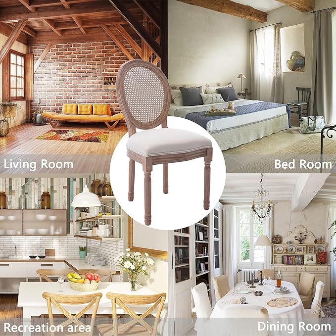 - 🪑Suitable for All Occasions: The french country dining chairs work great in any style theme can be used in your dining room, kitchen, living room, bedroom, Whether you're hosting a dinner party or merely enjoying a family meal, dining chairs will provide enough sitting space for all. These rattan dining chairs are perfect for expressing your style while impressing guests who visit your home. What's more, the dining chair is quite sturdy and lasts you for years to come!