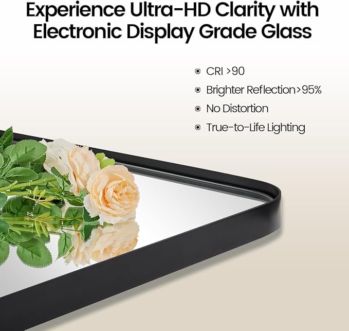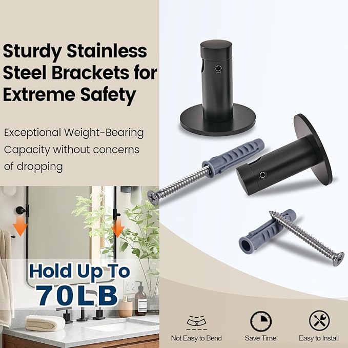 • 【Perfect Tilting Mirror】 Thoughtfully designed, you can easily adjust the angle of matte black rectangular mirrors based on your perfect height. Suitable for all your family, no matter children or seniors.