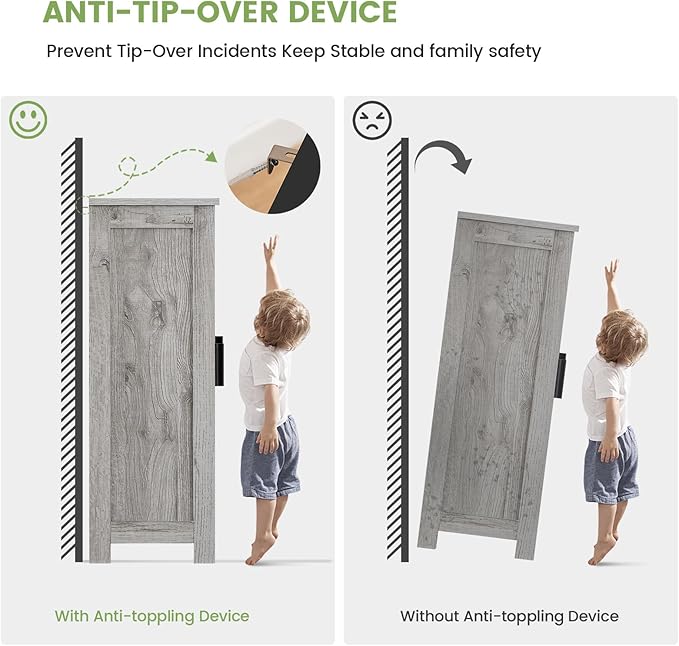 - ⭐【Good Quality & Safe to Use】Made of engineered wood, this storage cabinet is super stable, no harm and odorless, bring a safe and healthy living environment for you. Well made in eco-friendly waterproof paint, suitable for wet environment. Meanwhile, an anti-tip kit helps secure cabinet to the wall, which can protect the safety of your family.