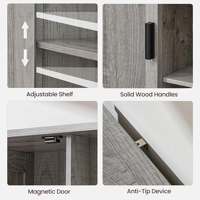 Iwell Storage Cabinet with 2 Doors and 4 Adjustable Shelves, Buffet Cabinet with Storage, Floor Cabinet for Living Room, Entryway, Kitchen, Rustic Gray