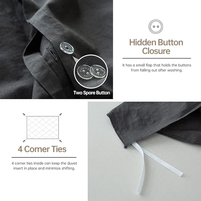 - 【Fabric Feature】Made of 55% Linen and 45% Cotton Fabric. Our Luxury linen blended duvet cover set retains rich texture of Linen, with soft touch and washed style. It has better moisture absorption and breathability than cotton fabric, which can ensure that you feel cool in summer and warm in winter. It is suitable for all seasons, making your sleeping environment very comfortable. Gets softer with every wash. Not easy to shrink and fade.OEKO-Tex certified material.