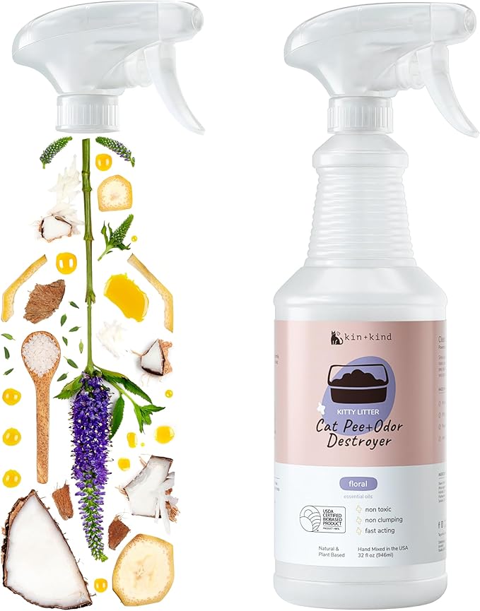 - KITTY LITTER: Keep your home fresh and clean with kin+kind's Kitty Litter Spray. Our non toxic formulation is gentle for kitty’s bum. However, our advanced plant technology is merciless on kitty’s pee and poo.