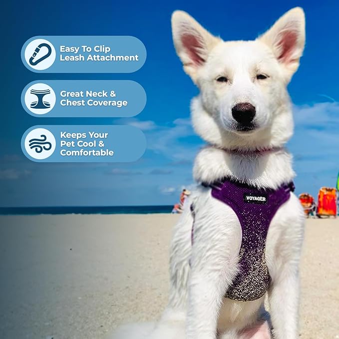 Best Pet Supplies Voyager Adjustable Dog Harness Leash Set with Reflective Stripes for Walking Heavy-Duty Full Body No Pull Vest with Leash D-Ring, Breathable All-Weather - Purple, L