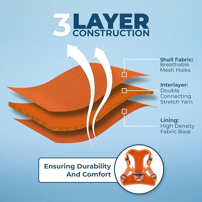 - REFLECTIVE WEBBING: 3M Scotchlite reflective material on the straps of this dog harness enhance your dog’s visibility during those early morning and late evening strolls.