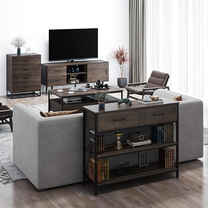 - AMPLE STORAGE SPACE: The entryway table has 2 bottom shelves and 2 spacious drawers, the shelves can keep your books, household decors, and collections well and 2 spacious drawers are convenient for you to store your items, such as snacks, foods, books, magazines, collections, bowls, and other tableware