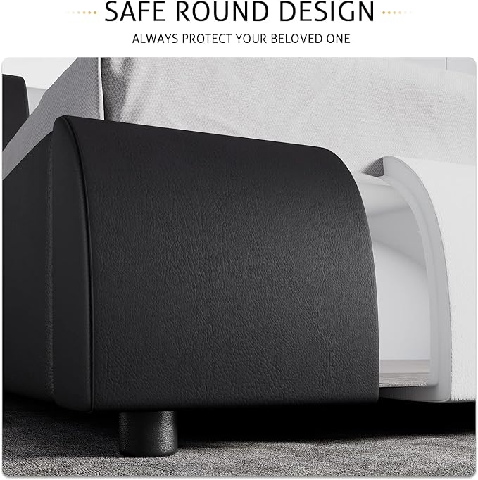 - ALL-ROUND DESIGN: With typical black and white color, this streamlined bed frame makes a stunningly chic addition to your bedroom. This round surface with no sharp edges design can prevent unnecessary accidents for your beloved ones