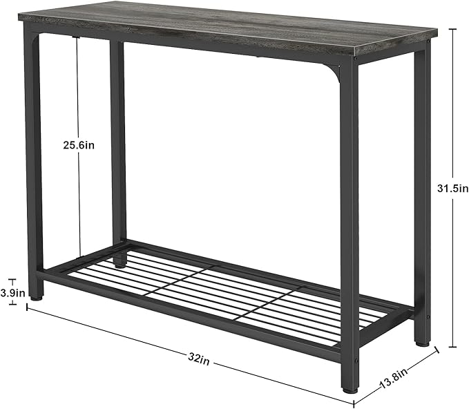 - - Narrow Long Sofa Table: Ecoprsio couch table with vintage natural looking top panel and mesh shelves, it can provide you with extra storage space, make your space more elegant. Table Size: 32*13.8*31.5 inches.