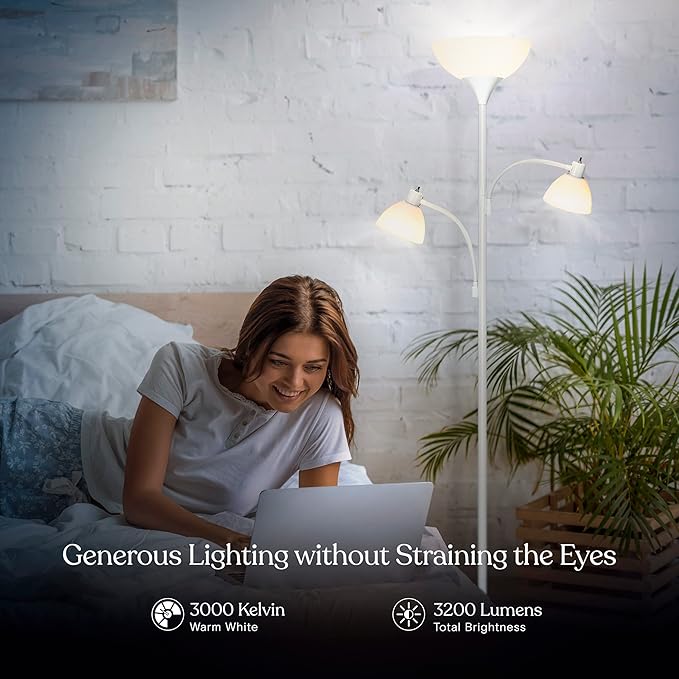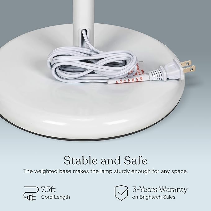 - Super Bright LED Lighting: Brightech floor lamp built-in LED light with 3200 Lumens is enough to light your living room. Powered with 3 LED bulbs: 16W / 1600 lumens, 2 x 9.5W / 800 lumens, the floor lamp generates 3000K warm white colors. Whether you want to read, write or simply relax, the standing lamp provides ample illumination without straining the eyes. The lamp cord extends just over 7 ½ feet, an ideal floor lamp for living room, bedroom.