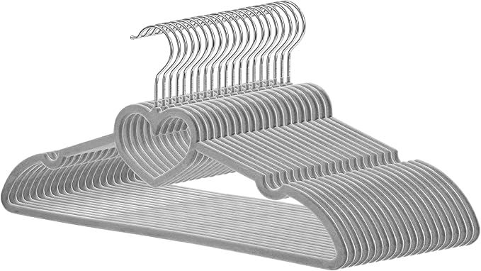 - 💖【Practical 】Premium velvet material around the coat hanger to avoid the fuzz shedding off and stain your clothes. The clothes hanger holds up to 10 lbs of weight, suitable for all season's clothes. Each hanger measures 16 x 0.2 x 8.27 inches (LxWxH), Set of 20 pack.