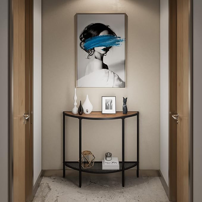 SAYGOER Entryway Table 2 Tier Small Console Table with Storage Half Moon Sofa Couch Table Mid Century Modern Narrow Entry Way Tables, 36.22" D x 11.8" W x 31.5" H, Easy Assembly, Dark Walnut