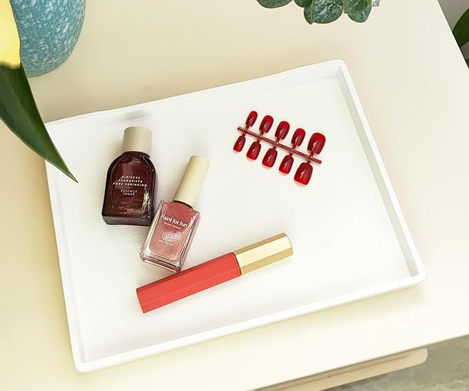 Small White Serving Tray (9.5 x 7 inch) for Serving Accessory, Drinks, Spa, Coffee, Wine, Tea, Bar, Party, Seasoning, Perfume and Display Use.