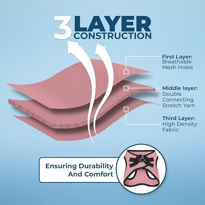 - Comfort All Year: Made with a soft and breathable air mesh, this lightweight, fast drying harness ensures maximum comfort for your pet during walks, regardless of the season