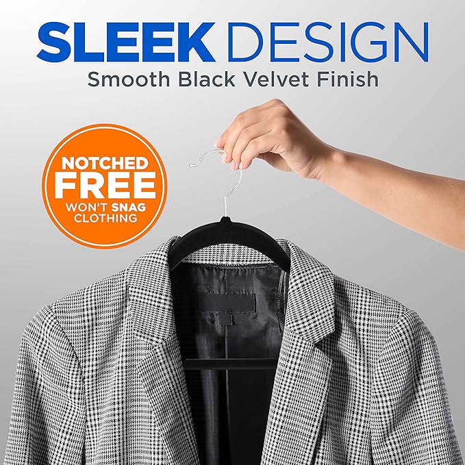 - NON-SLIP VELVET FINISH – Soft black velvet keeps clothes from slipping or falling, ensuring jackets, shirts, dresses, and pants stay securely in place without creases or shoulder bumps.